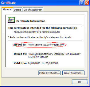 site, always view the details behind the security padlock